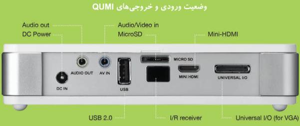 ویدئو پروژکتور کیومی Qumi قابلیت اتصال به اکثر دستگاه های دیجیتال را داراست: